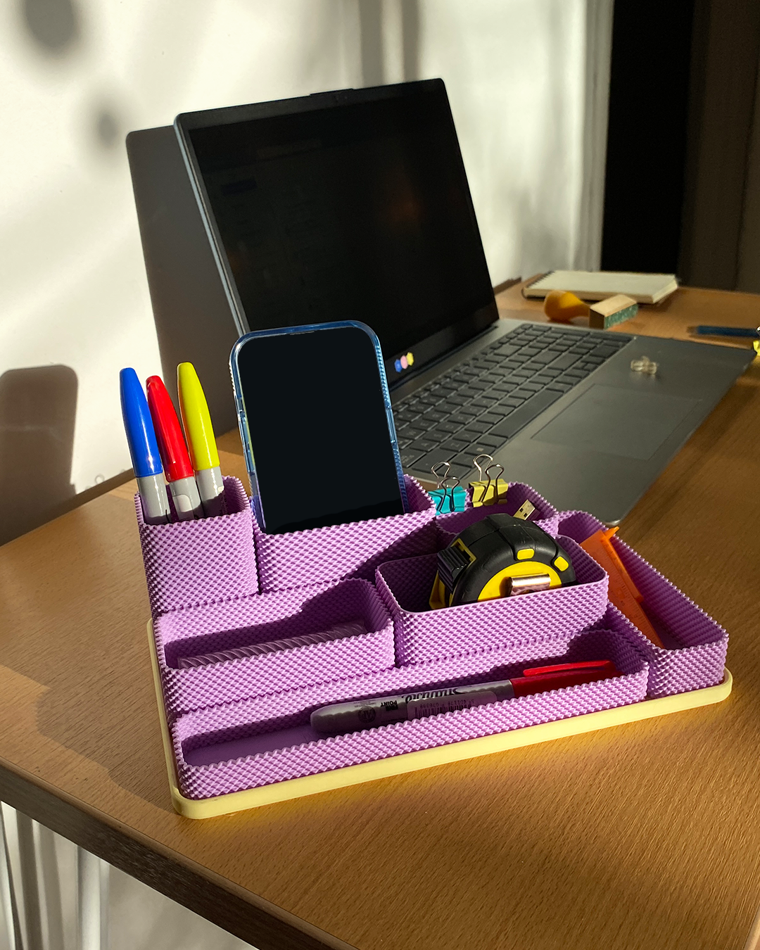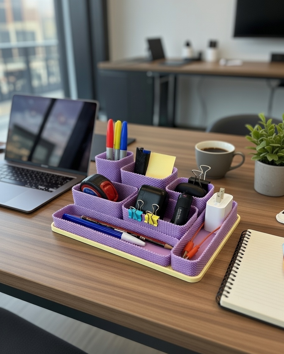 Elevate your workspace with the Coregrid Bundle 2, a stylish and functional desk organizer designed for modern home decor and interior design. Crafted with Lunfardo’s signature RippleMesh texture, this organizer adds a unique visual flair while keeping your desk neat and clutter-free. Perfect for storing stationery, gadgets, and everyday essentials, its sleek design seamlessly blends functionality with aesthetic appeal, making it a must-have accessory for any contemporary workspace.