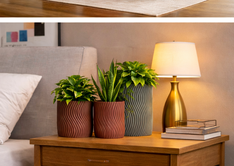 This stunning new addition to the EvolvePlanter System features a captivating, continuous wavy texture that flows seamlessly around the entire planter. It creates a mesmerizing play of light and shadow, making it a true centerpiece for larger plants.
